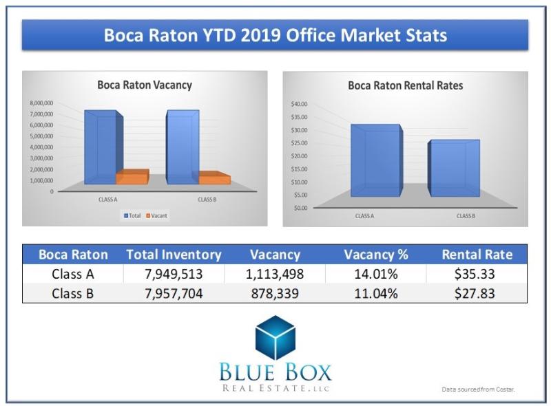 The Boca Raton office market consists of three business districts: North, East and West. Major tenants include corporate giants such as Office Depot, IBM and ADT Security. Class A and Class B rents have grown 3% since the start of the year with Class A rates at $35.33 per square foot and Class B at $27.83 per square foot.